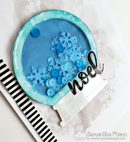 for the background, i used the Snowfall Stencil! I covered it all in gray ink, spritzed it with water, then pressed it down onto my white cardstock! SUCH a fun way to add some details to the background!